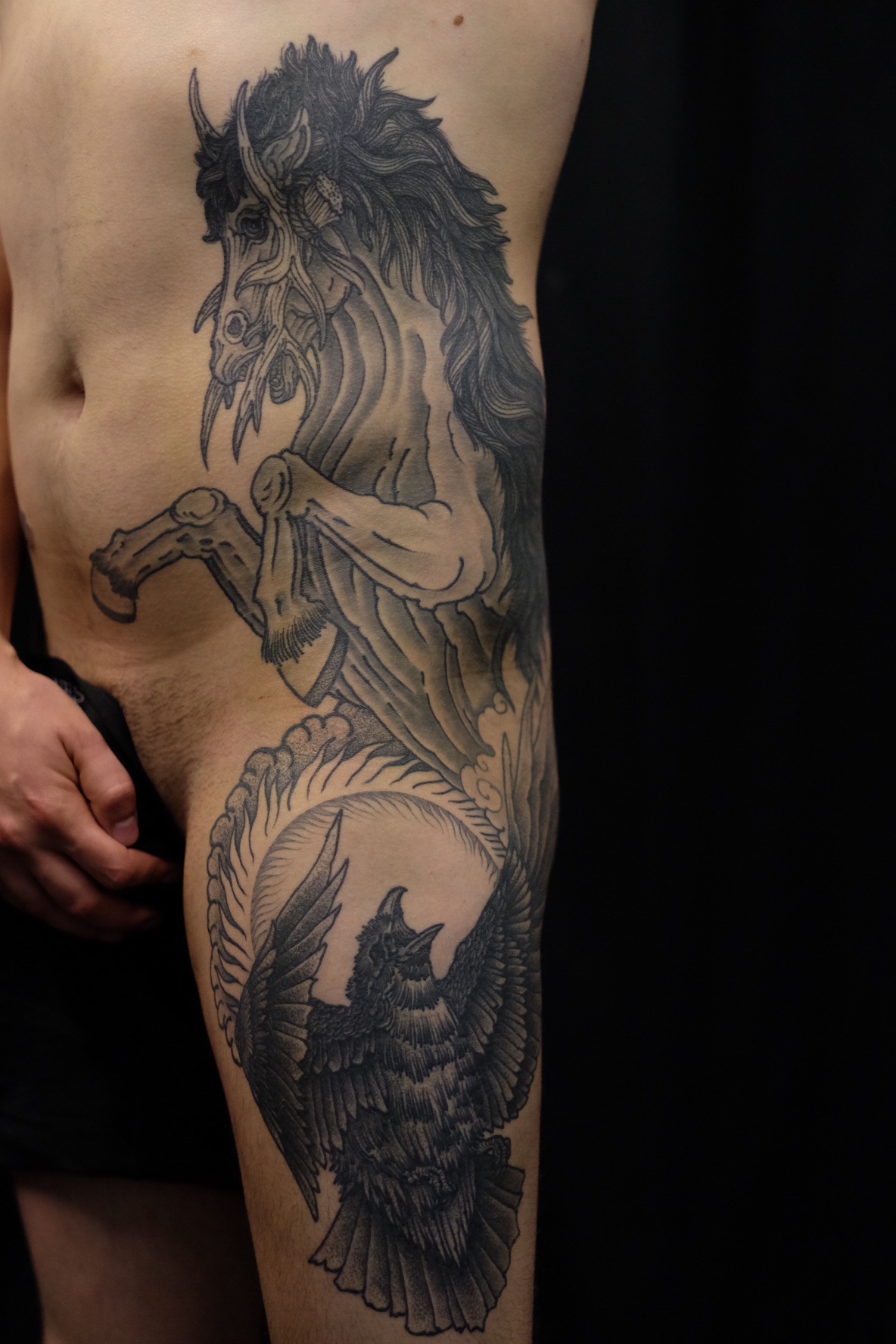 As my trip to the U.K. Comes to an end I’m looking back at my photographs, mostly of visits to museums and old castles and family fun. But a certain group of images stick out, whilst here a very dedicated and patient client came three times to get work from me, it’s always a pleasure to tattoo Karen.