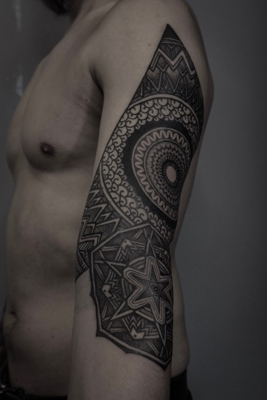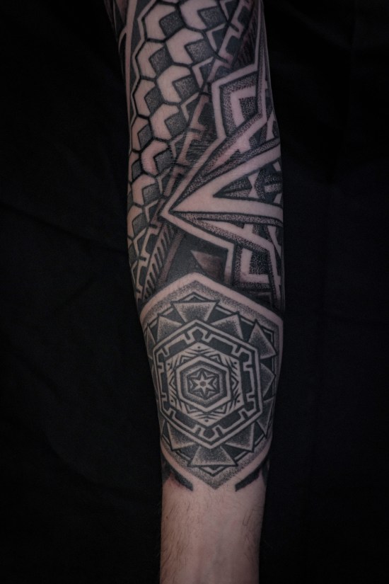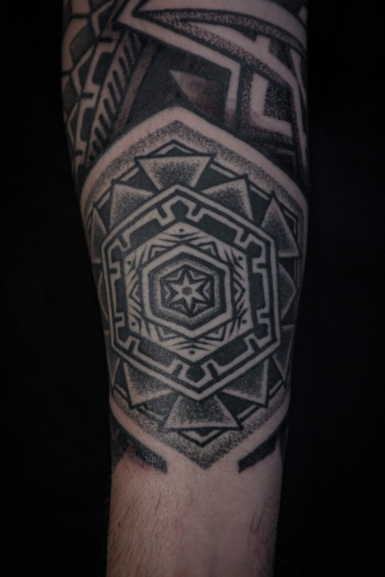 I really enjoyed this one, mixed some very old Polynesian influences against some of my more current geometric simple shapes and more complex dotwork mandalas.
