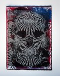 Screen print on lazer cut stencil, enamel, acrylic and ink 22.5×16”