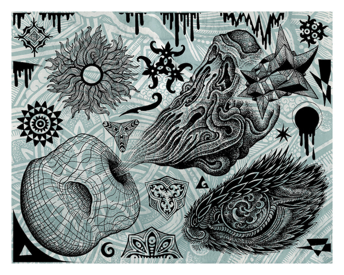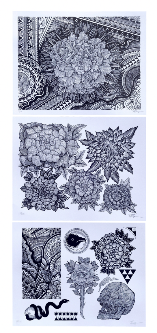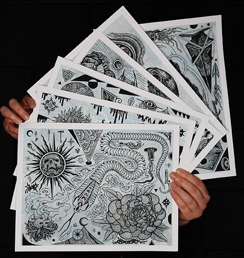 Below is an updated look at what I have to offer via my various publishers and web-stores, selling art and merchandise allows me to take a step back from tattooing to create art that informs and refreshes my look at the tattoos I do, the support is invaluable. Thank you.