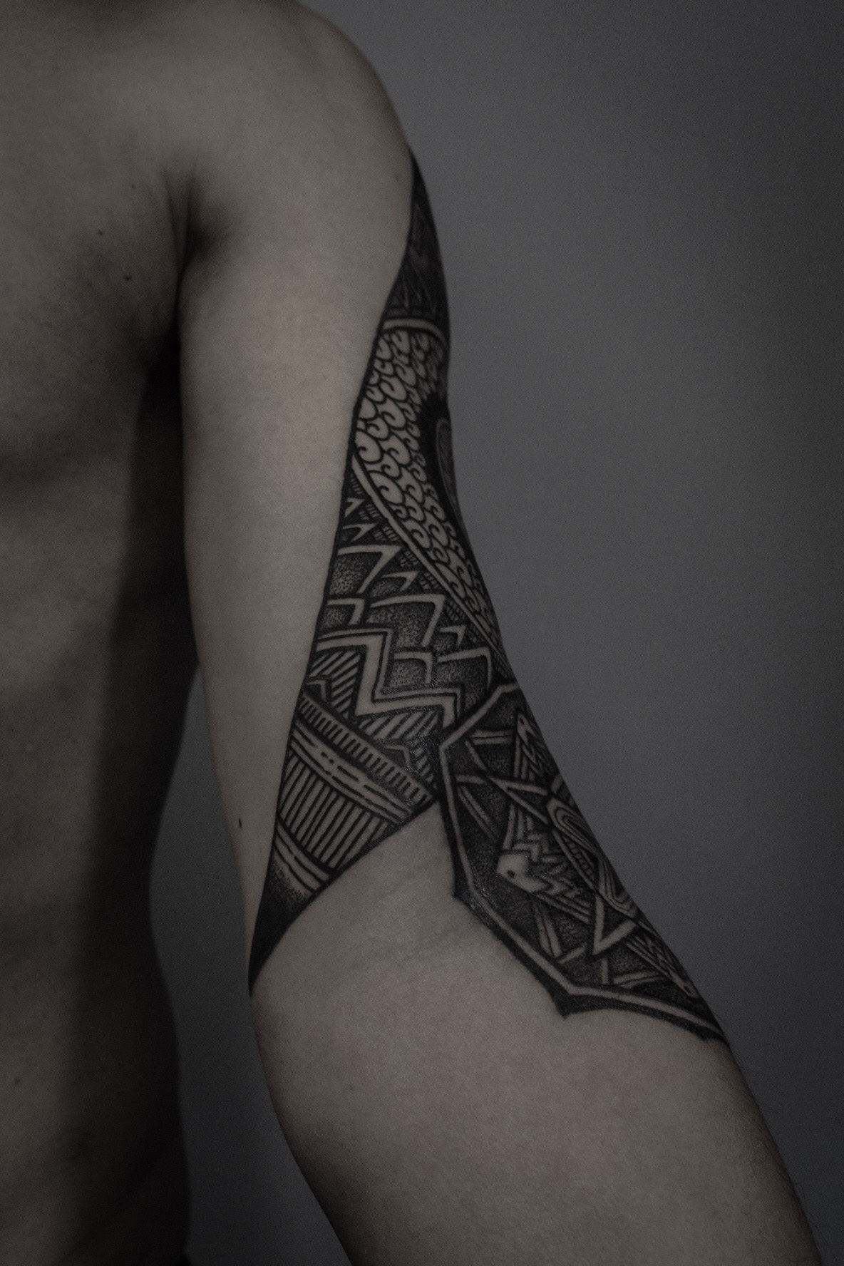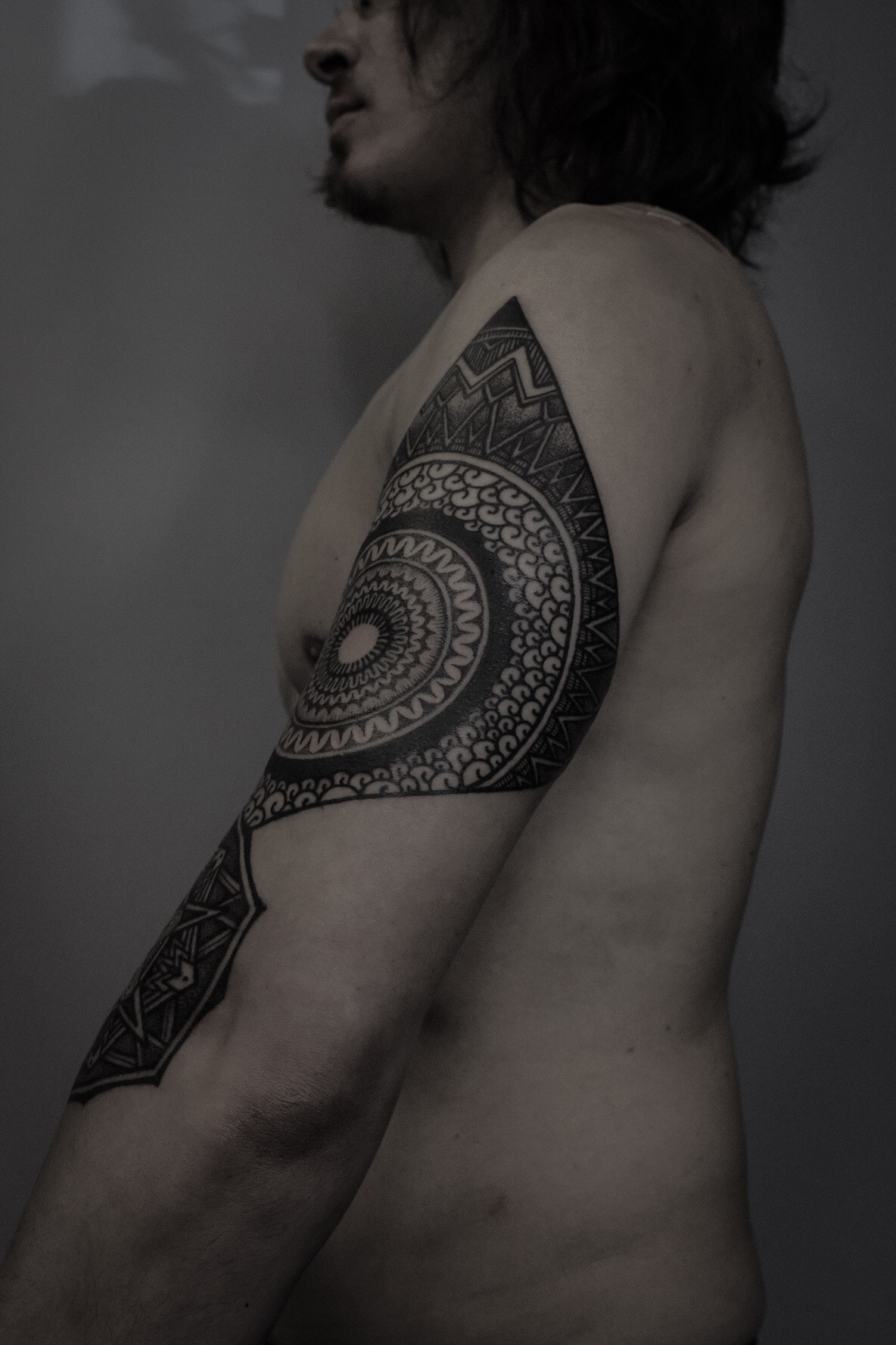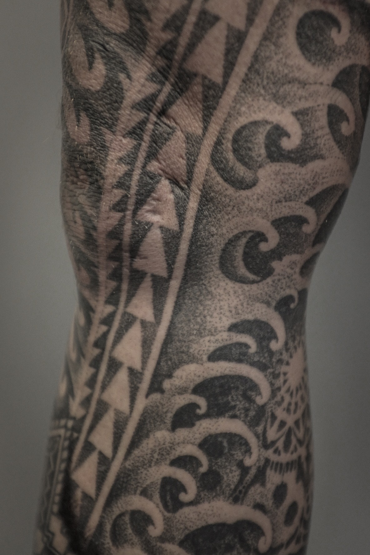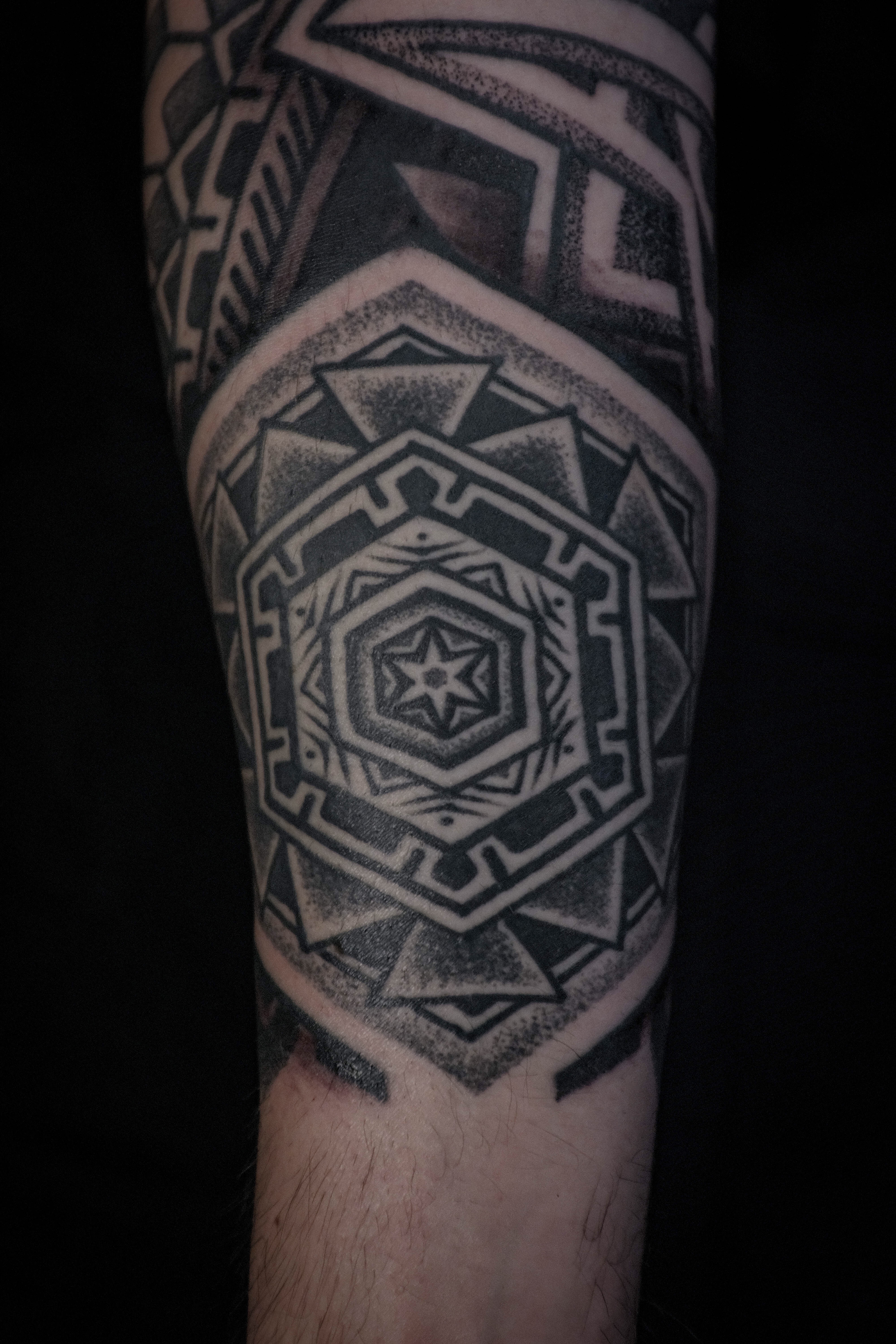 I really enjoyed this one, mixed some very old Polynesian influences against some of my more current geometric simple shapes and more complex dotwork mandalas.