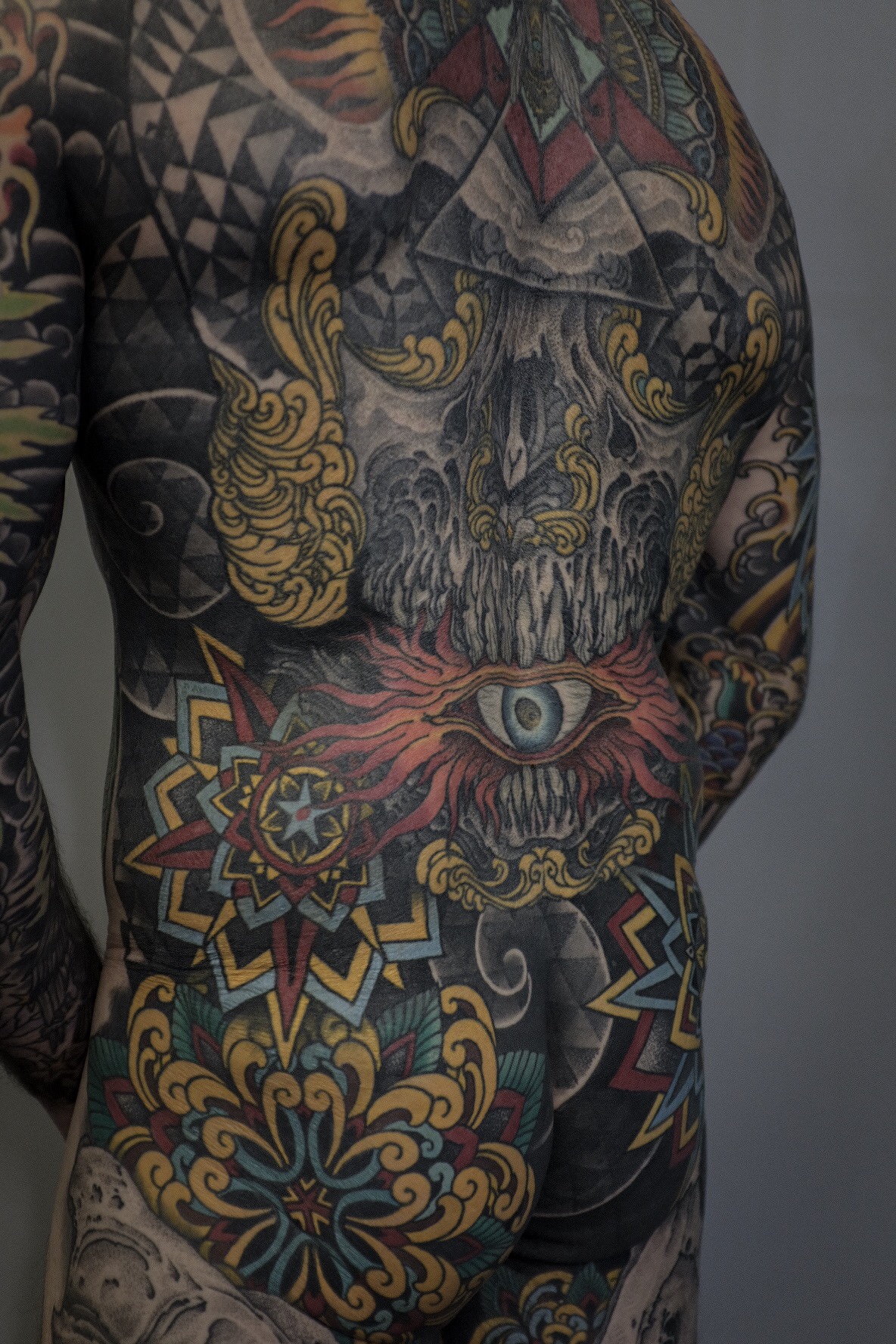 Next up is Michael Waters finished and healed back piece, this I really enjoyed as we got to do some color mixed in with pattern work, a horse, wolf and a giant ornate human skull. This took a few years to compete as we finished the skull and took a break, thank you for your trust and patience Michael, it is immense!