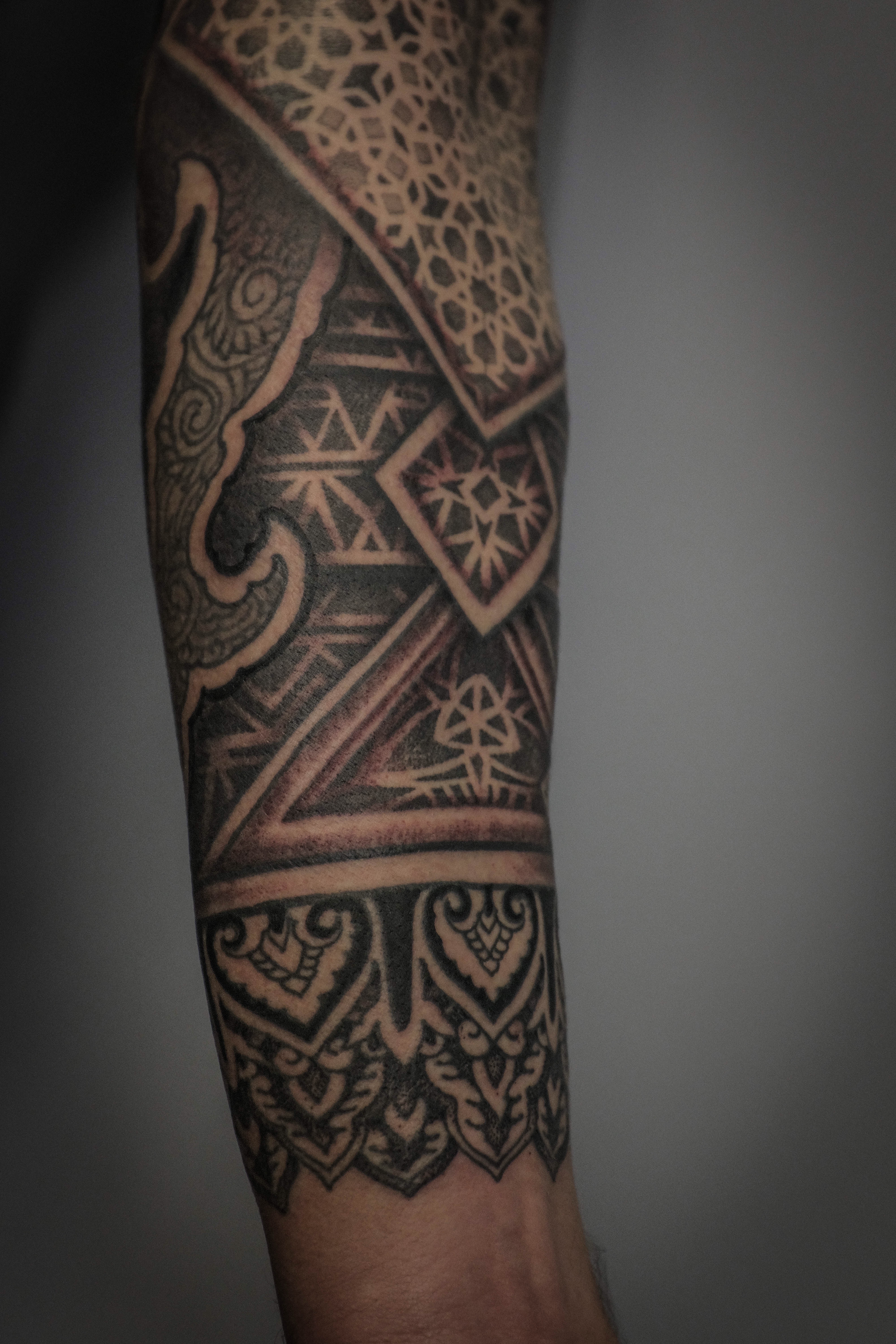 Below are some images of Kian’s sleeve, Really loved doing this one, the mix of Persian and Arabic ornament was a lot of fun and really interesting to research the beautiful historic art.