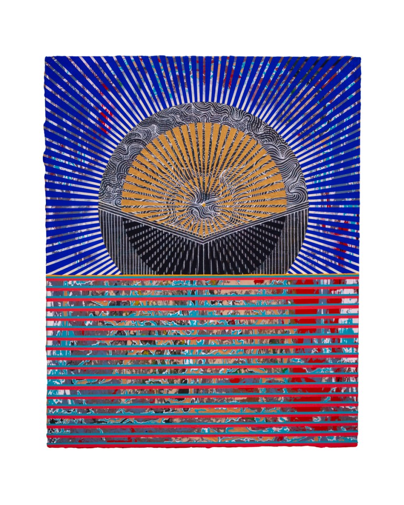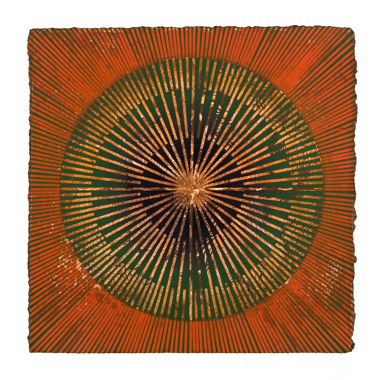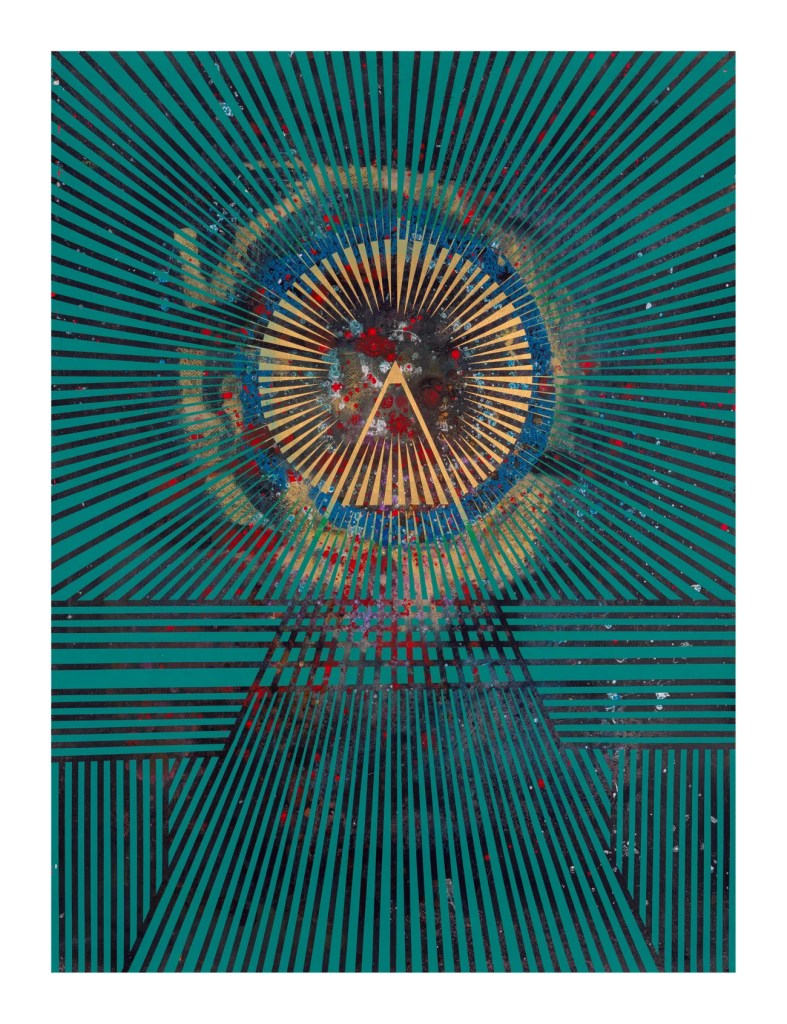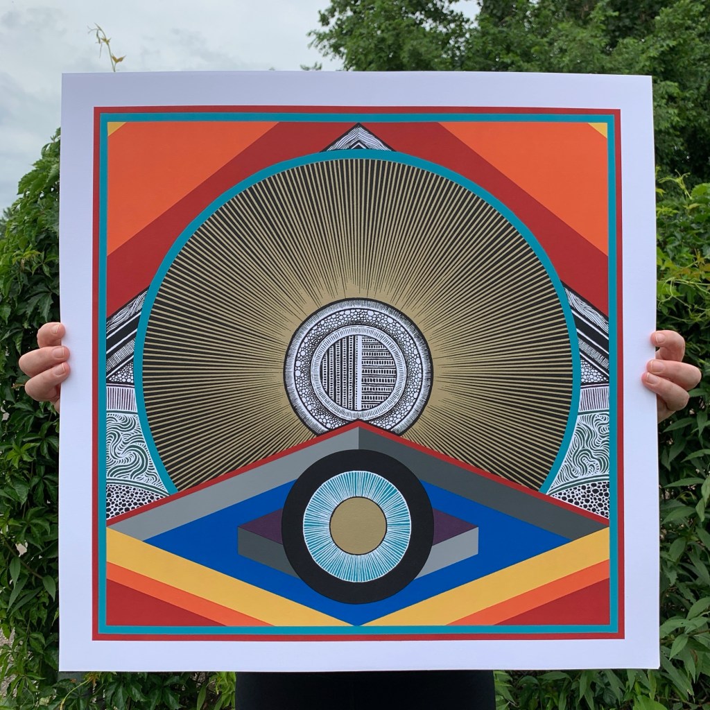 It is a 11 layer screen print with metallic gold on 110# Crane Lettra 100% cotton paper. Hand numbered & initialed edition of 60