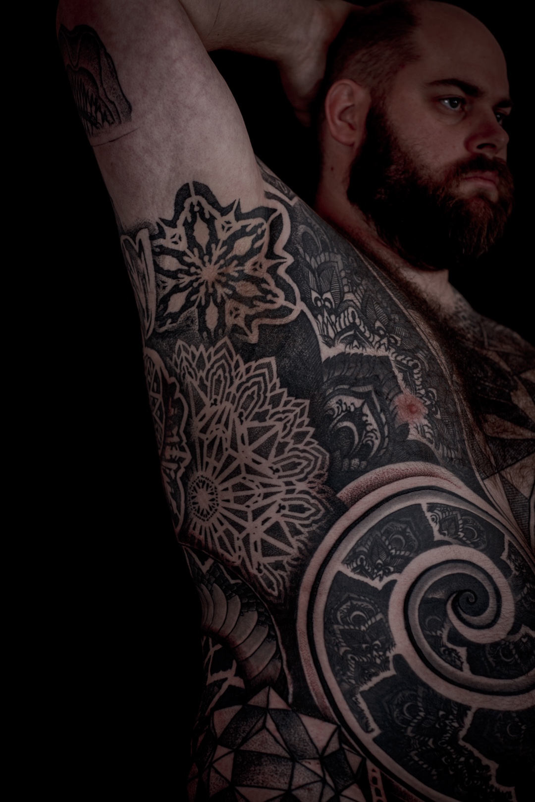 The process wasn’t just about enduring physical pain; it was a journey of trust and transformation. Adam showed remarkable resilience and patience, coming back session after session, as we brought this vision to life. Each visit added to the story. It marked not only on his skin but also in the camaraderie. Mutual respect grew with each session.