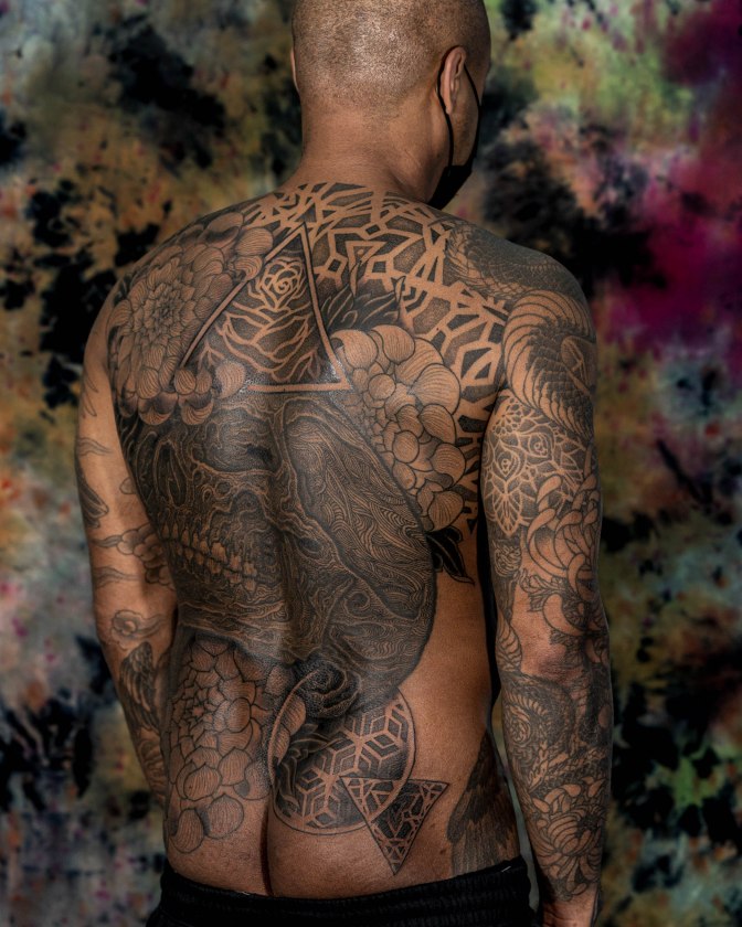 ‘I am a tattooer, an artist, a husband, and a father. My sensibilities as an artist are defined by how I may incorporate and blend these identities into my tattooing’.